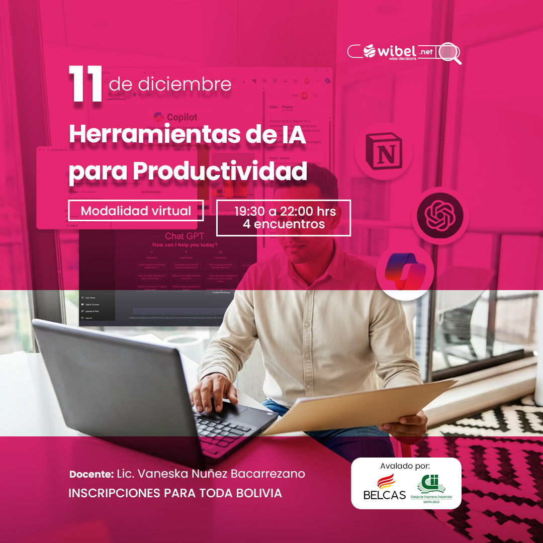 Este curso brinda a los participantes una introducción práctica al uso de asistentes inteligentes, generadores de contenido, organizadores digi- tales y plataformas visuales, permitiéndoles automatizar tareas, generar ideas y comunicarse de manera más efectiva en sus entornos laborales.